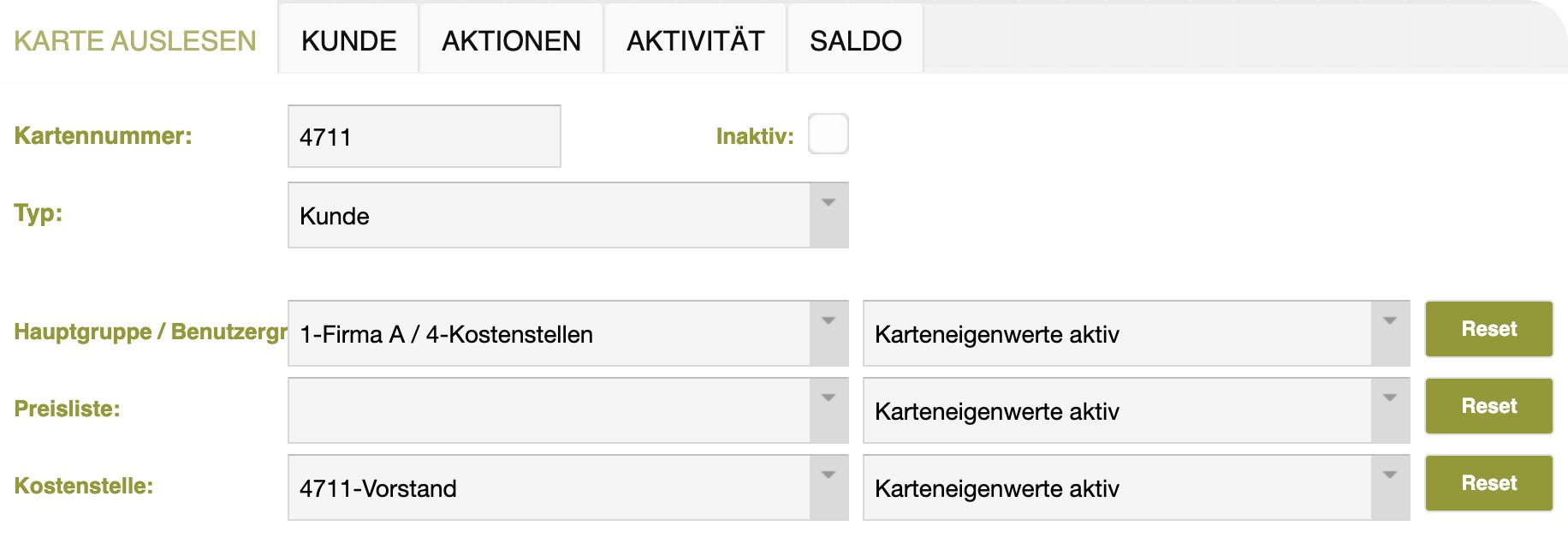 Einer Kostenstellen dürfen aber auch x-beliebig viele Kundenkarten zugeordnet werden. Sollen zB. eine gesamte Abteilung auf die gleiche Kostenstelle buchen können, so wäre dies machbar. Dennoch wäre über die Kundenkartennummer einsehbar, welche Kundenkarte genau Buchungen auf diese Kostenstelle vorgenommen hat.
