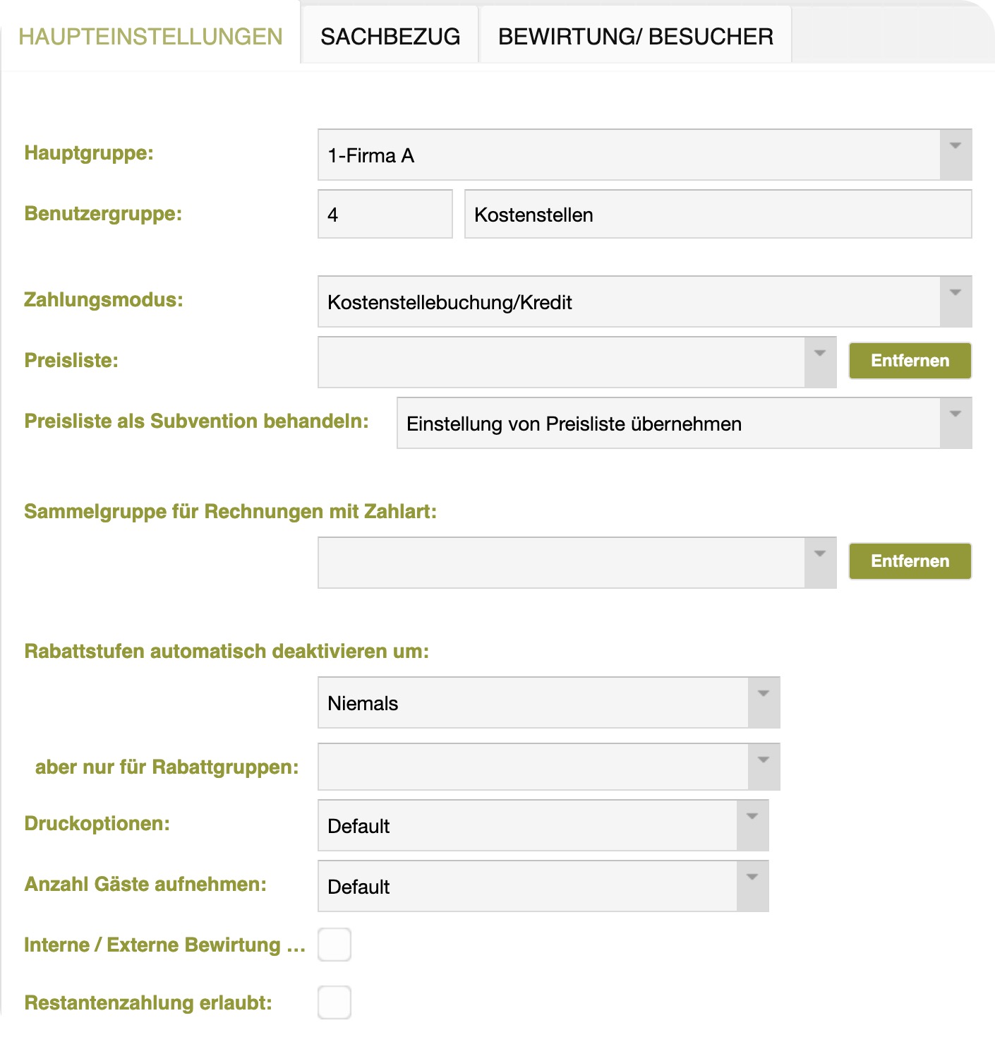 Mit Kostenstellen ist es möglich Zahlungen über das Kassensystem vorzunehmen, welcher als Umsatz in die Kasse einfließt, jedoch erst später über eine Rechnungsstellung beim jeweiligen Kostenstellenbesitzer eingefordert wird.