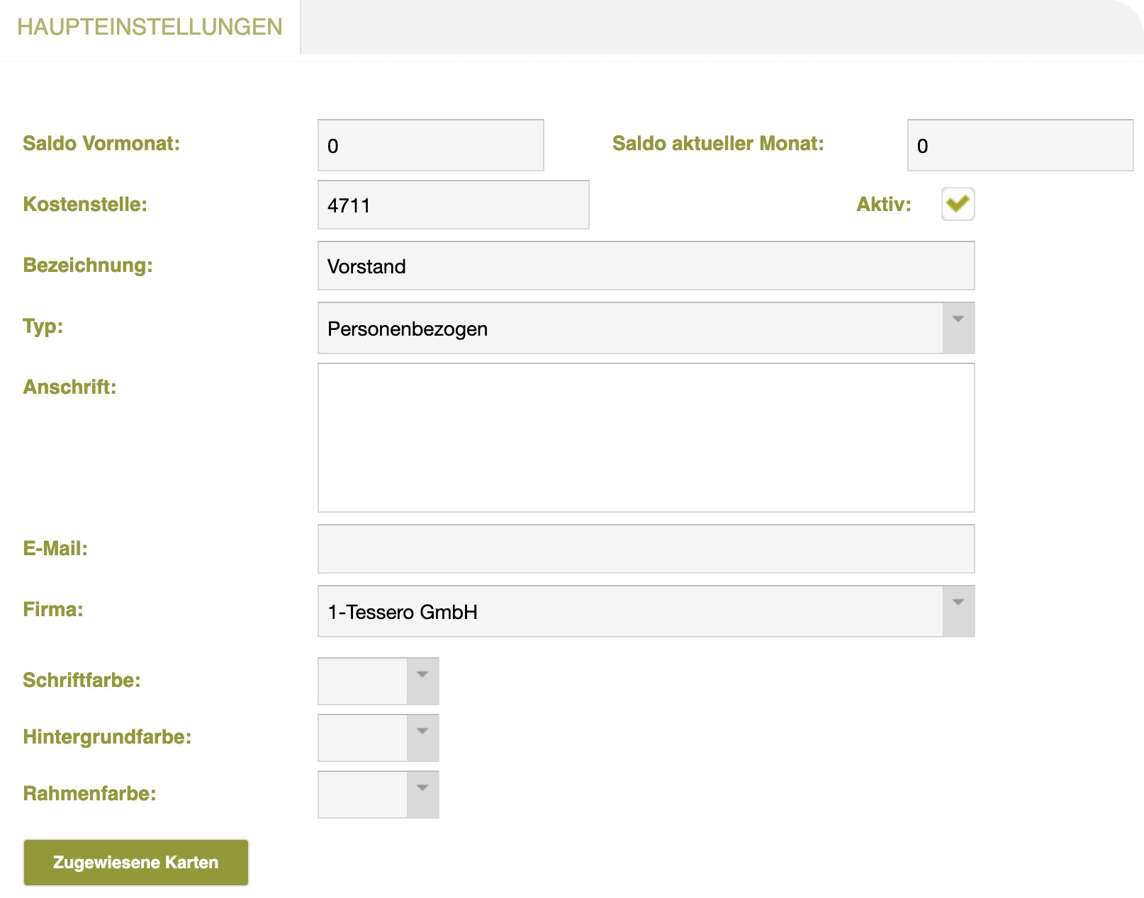 Im Feld Zugewiesene Karten kann zudem noch kontrolliert werden, welche Kundenkarten dieser Kostenstelle zugewiesen sind.